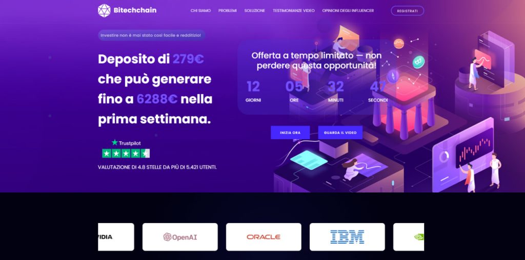 Bitechchain è una delle piattaforme di trading automatizzato più avanzate, basata sull’intelligenza artificiale. Il sistema analizza i mercati finanziari, esegue operazioni automatiche e offre agli investitori un forte potenziale di reddito passivo. A differenza di molte altre piattaforme simili, presenta una soglia di accesso ridotta, rendendola adatta anche a chi muove i primi passi nel mondo degli investimenti.
